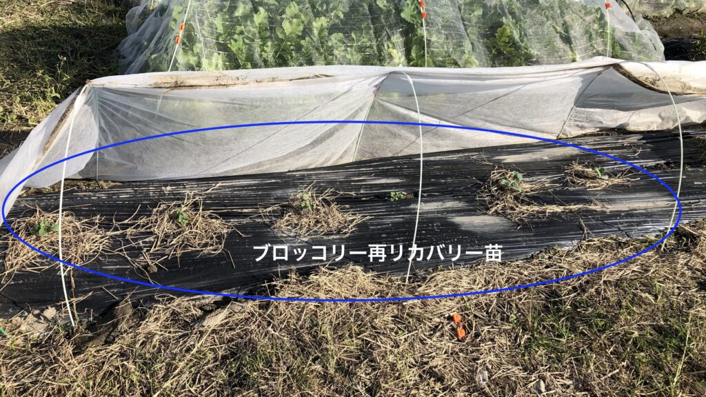 ホームセンターで、「遅蒔きブロッコリー」という苗を見つけて、まだ間に合うのかと思い早速購入して10/24に12株を定植! 約1ヶ月後に活着を確認して少し早めの冬支度に米藁を敷いた。ブッロコリーは結局、一番苗全滅、リカバリー苗x3、再リカバリー苗x6、遅まき苗x12、合計21株が現役株となる。