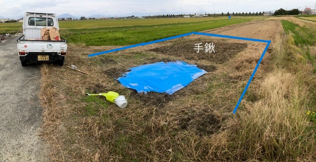 同じものをもう一面つくって耕したら、枯草を敷いて冬の間は熟成😴