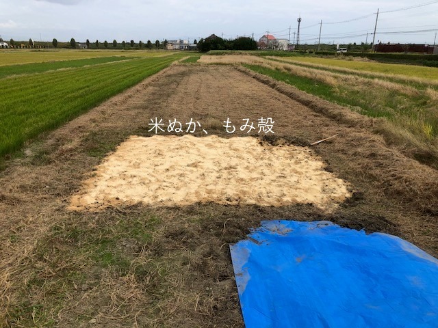 米ぬかと、もみ殻を鋤きこんでフカフカの土づくり。ほぼ理科の実験状態😶
