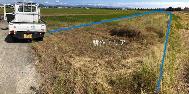 5m x 5mは手鍬でやって、奥は隣家のトラクターに刈って貰い、畑らしくなりました。