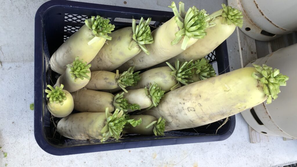 まだ「夏祭り大根」が2週間遅れで追随しているので、年末に収穫予定です。大根の保存方法はいろいろ試しているので、まだまだレポートが続きます!!
