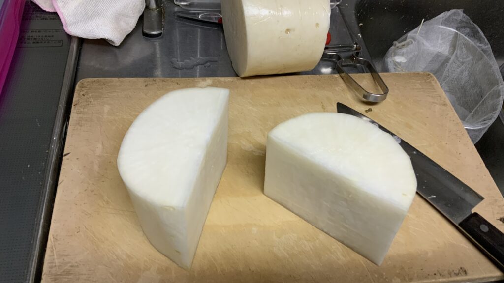 「今日イチ・デカ大根」は早速食卓へ、巣が入ってないか心配でしたが見事に綺麗な大根でした🔆