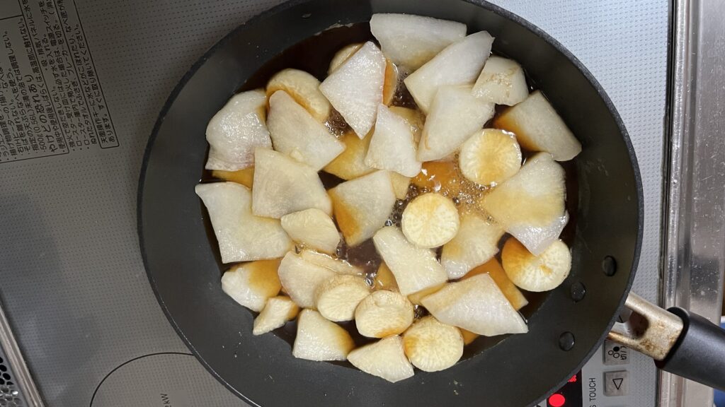 大根がたくさんできたので、色々と食べ方も工夫をしてしっかりと家族のお腹に収めました。「おでんにしよう」と思って大根を買っていた時と違って、「これだけの大根、どうさばこう?」という状況になると随分知恵が働くもんだと思いました。需要に従ったメニュー考案が基本と思ってましたが、供給に押されるメニューの捻出ということを初めて経験しました。