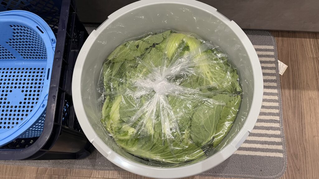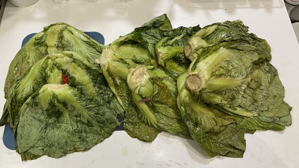 4️⃣引上げたばかりの白菜、古漬けになってます
