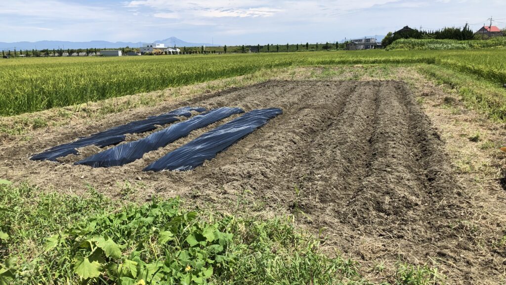 午後から白菜の定植用に黒マルチチング