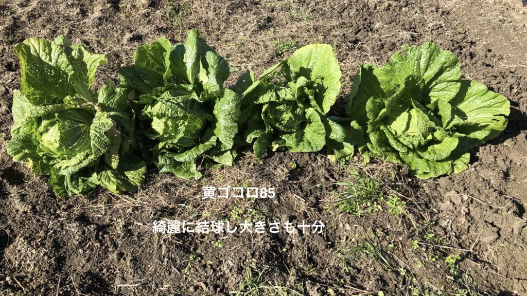 次に「黄ゴコロ85」を収穫、こちらは大玉でしっかり結球し三種の中では一番の出来。家族も出来栄え味共に絶賛!一方「京都3号」は残念ながら葉ばかりが膨張し結球せず。一応食したが食感がかなり固くなっており失敗作と認定!