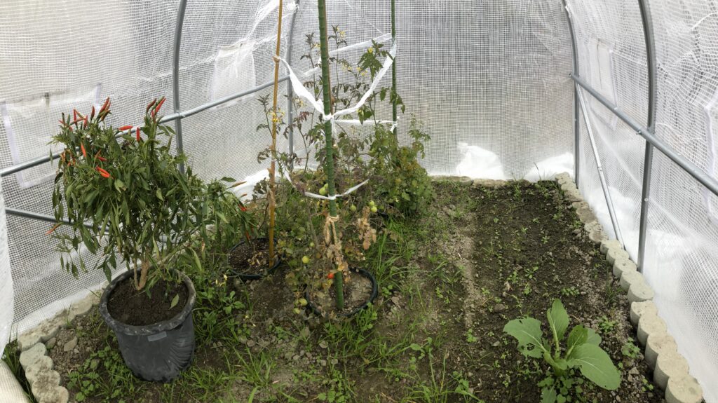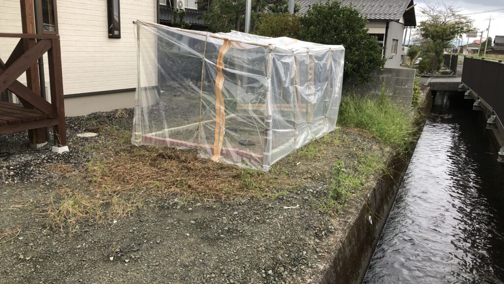 せっかく成長した夏野菜、特にミニトマトを延命させたくて、温室に挿木栽培でやれないかと考え、コストも掛けたくなかったので近所の竹林の竹で竹細工+農業用ビニールシートで手作り温室を制作。しかしこのビニール屋根は雨水の排水がうまくできず豪雨で撃沈!結局Amazonで¥13,900のビニールハウスを購入して組み立て!合掌屋根の設計がこの価格ならと心底納得でした🙂↕️