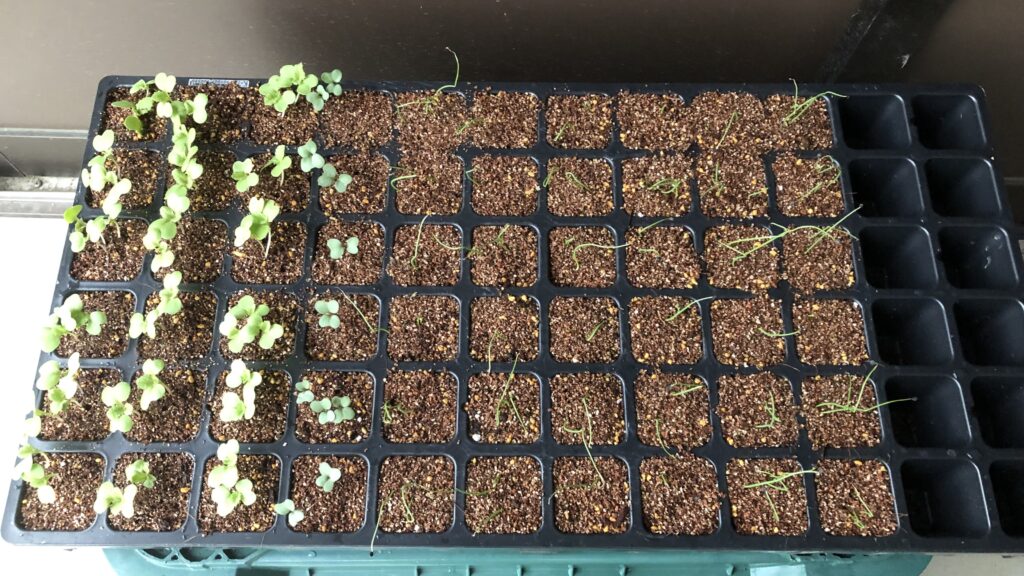 ブロッコリー苗の育苗、自宅部屋の窓際